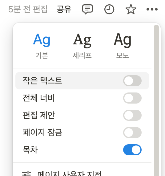 텍스트 글꼴(폰트) ・ 크기 ・ 페이지 너비 변경