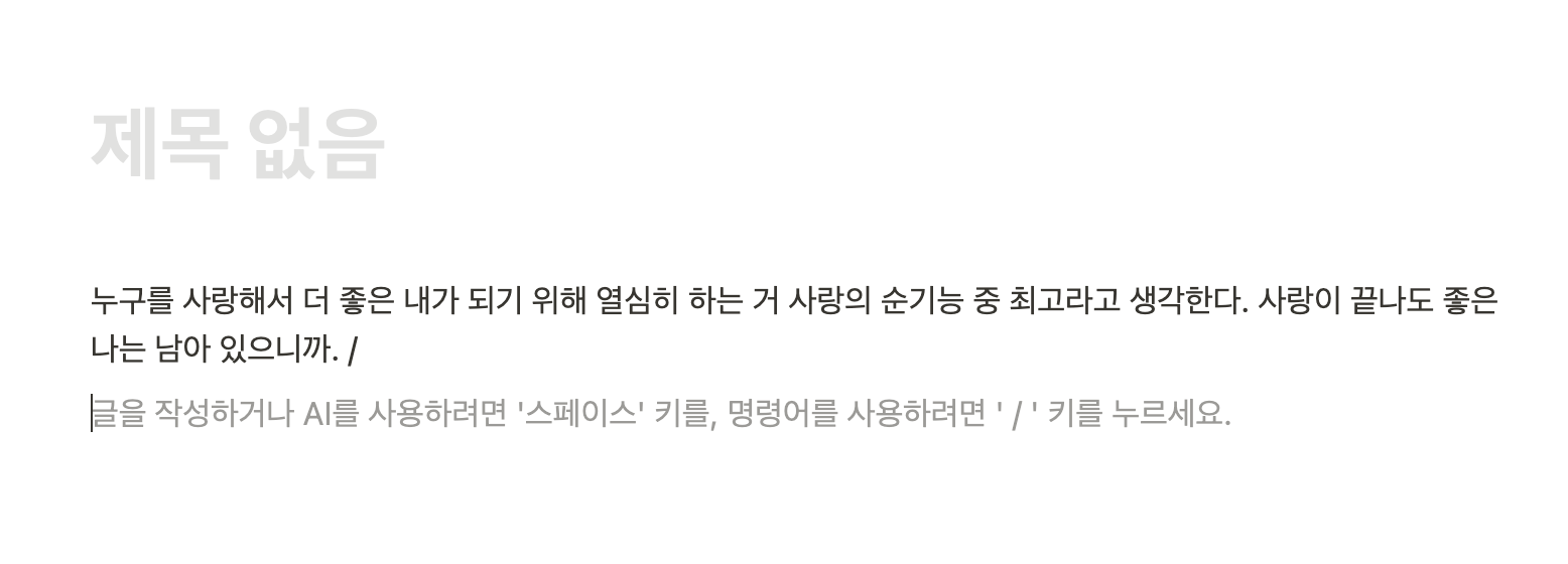 글을 작성하거나 AI를 사용하려면 '스페이스' 키를, 명령어를 사용하려면 '/' 키를 누르세요.