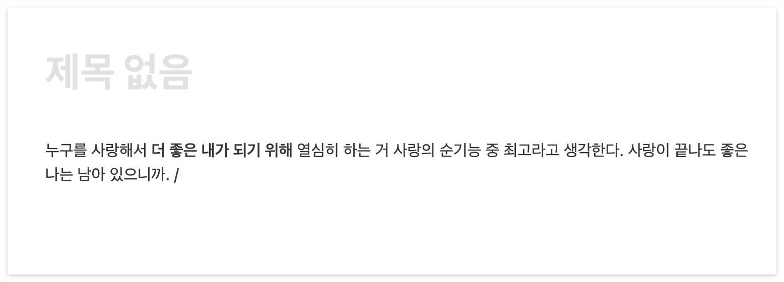 만약 명령어가 아니라 '/' 문자를 내용으로 입력하고 싶은 경우, '/'를 입력하고 스페이스바로 띄어쓰기를 1번만 해주세요. 그러면 명령어 창은 사라지고 '/' 문자가 텍스트로 입력할 수 있습니다.